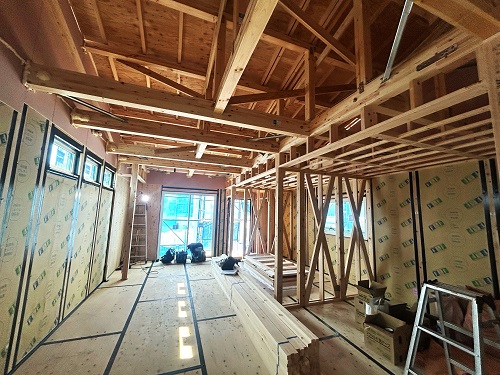 先日、展示場から徒歩圏内にて進行中の平屋建て住宅の中間構造検査を実施しました。