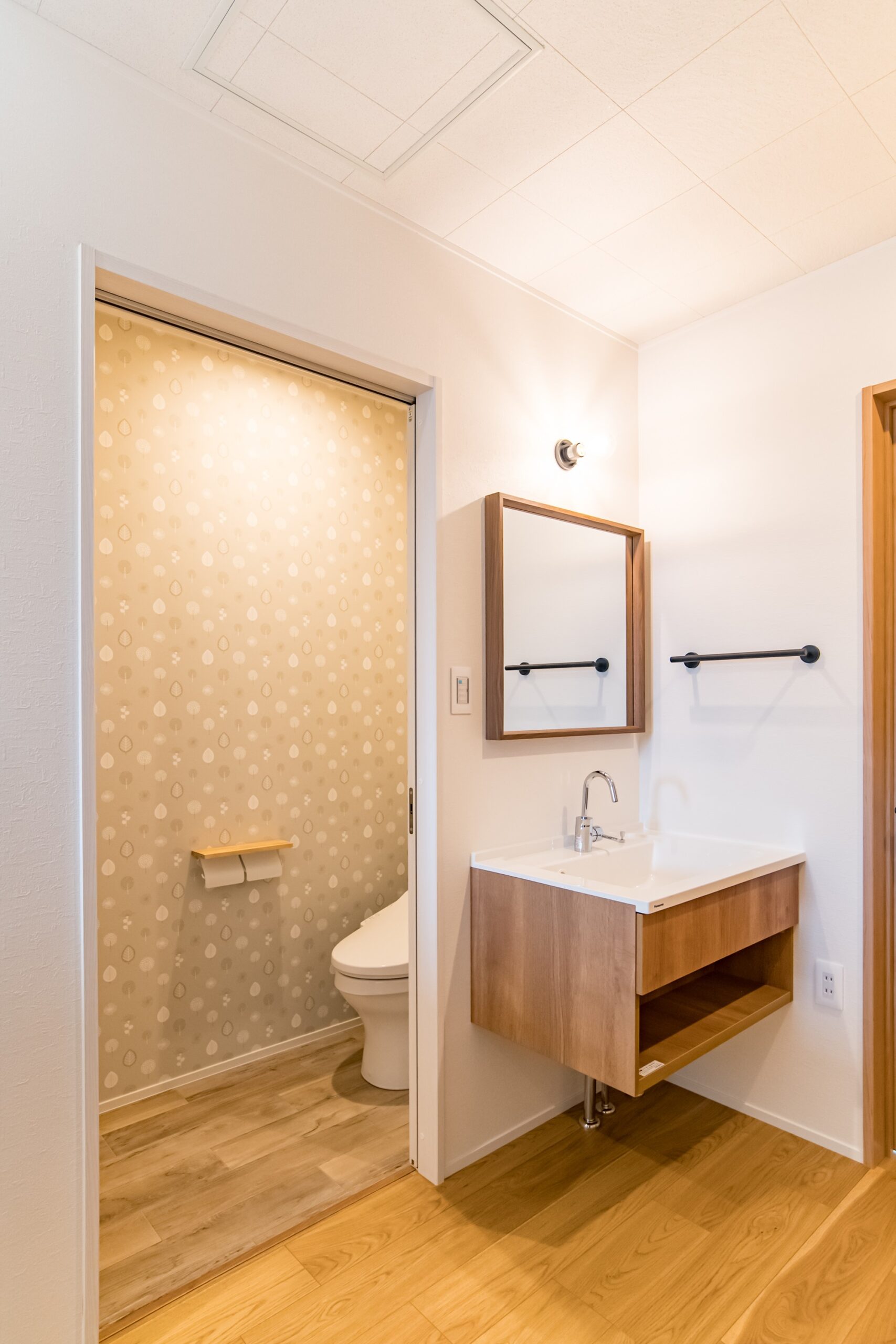 木目の下がり天井がアクセントのキッチン in 瀬戸市 延床31.81坪 気密性能C値0.34 断熱性能Ua値0.43 収納たっぷり!平屋の家 in 名古屋市 ピクチャーウィンドウのある書斎 in 名古屋市